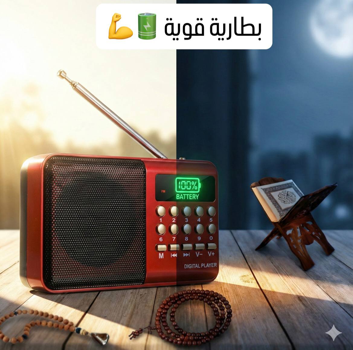 الراديو يعمل لساعات طويلة وقابل لإعادة الشحن. مثالي للتنقل أو السفر بلا ما تنسى الشحن.